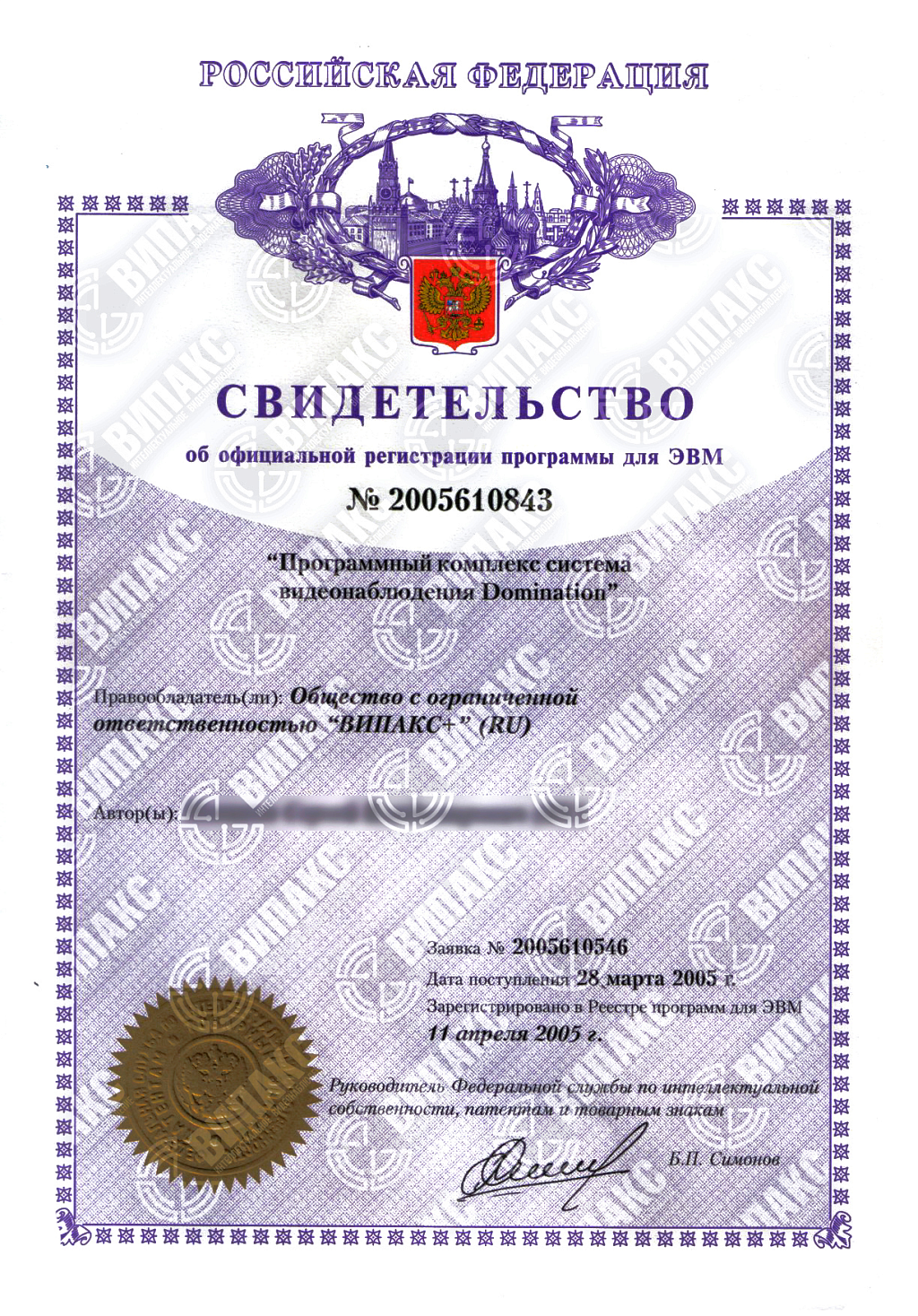 — клиентское программное обеспечение «Domination» (ПО зарегистрировано согласно ПП РФ 1236 Реестровая запись №9606 от 15.03.2021).