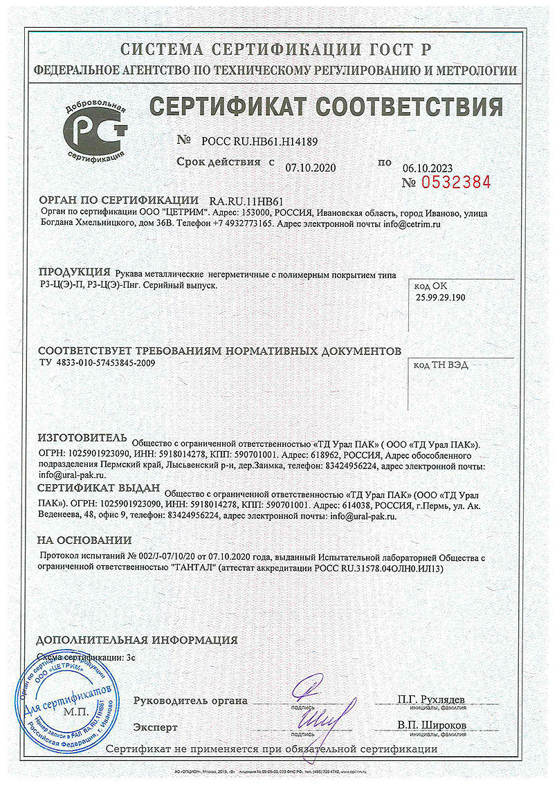 Металлорукав 20 мм РЗ-Ц-Х-20 с/з и х/б (бухта 50 м) Урал Пак купить в Челябинске в компании ВИПАКС.