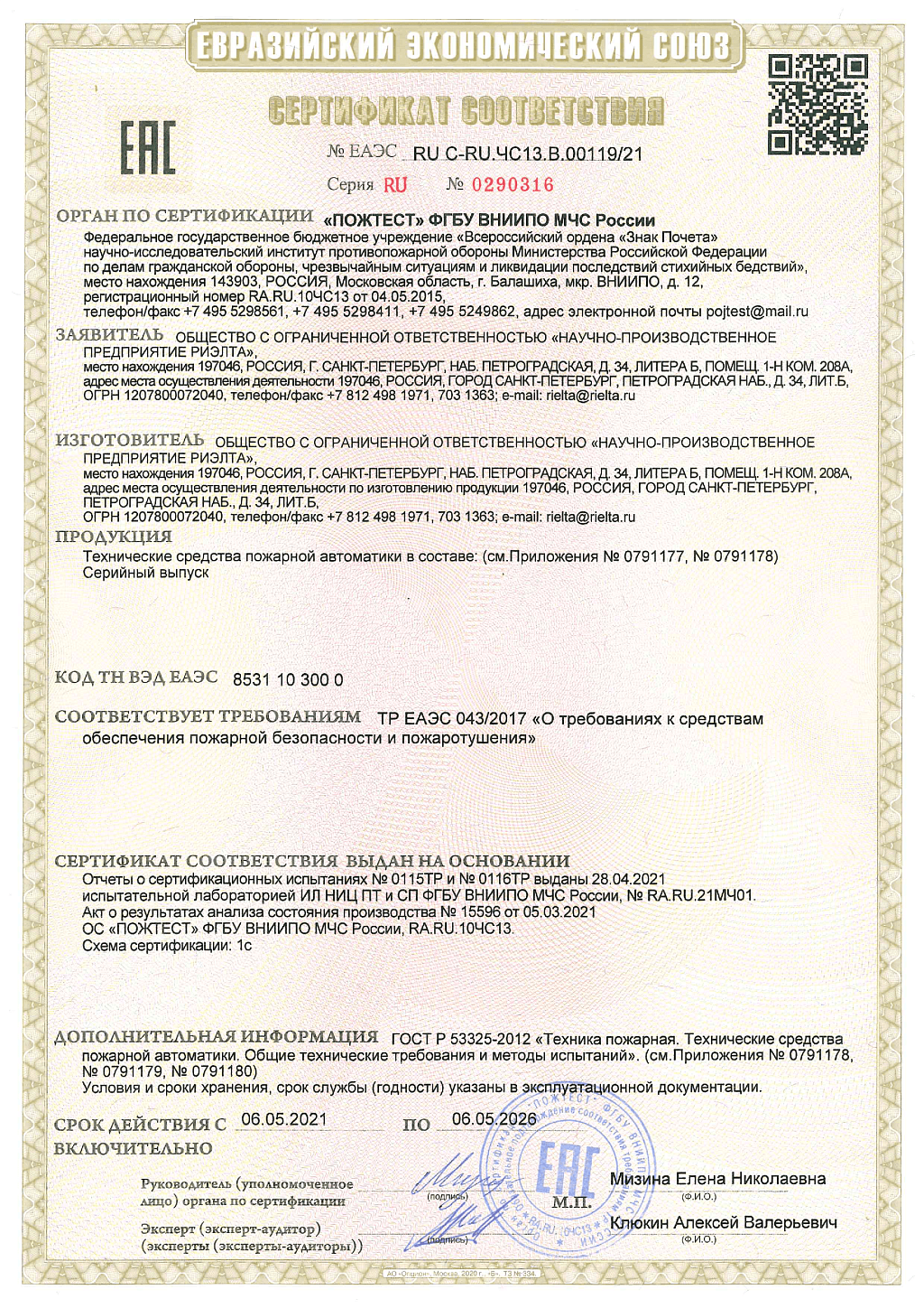 Извещатель пожарный ручной радиоканальный, рабочая частота 433,05...434,79 МГц, индикация режимов работы, элемент питания CR123A(основной) CR2032 (резервный), степень защиты оболочкой IP54, диапазон
