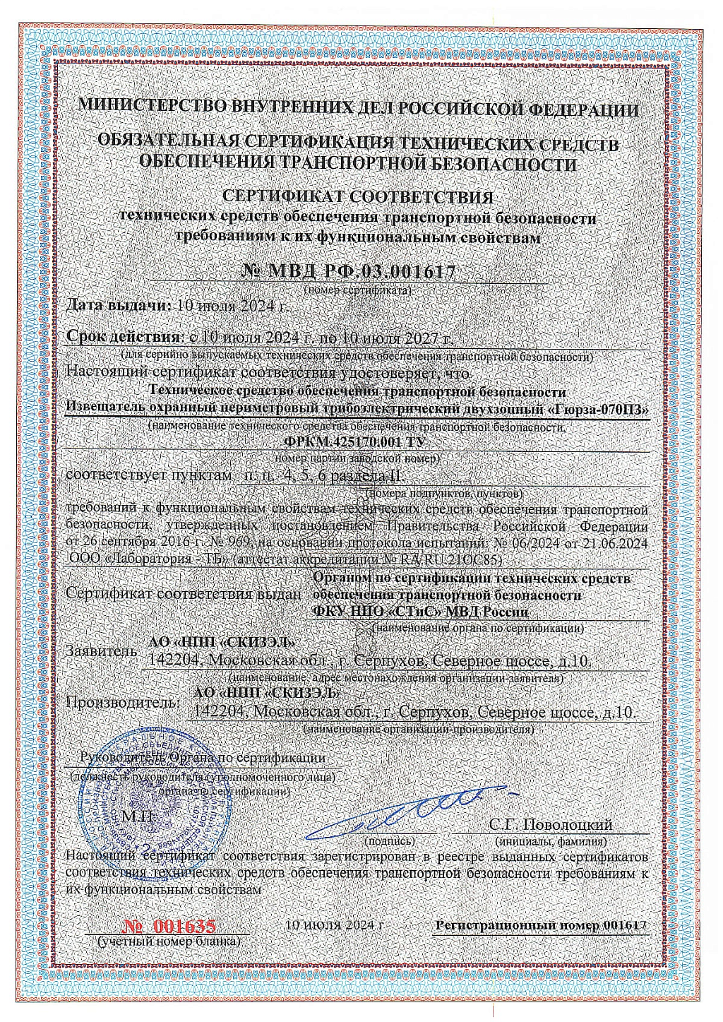 Извещатель охранный периметровый трибоэлектрический двухзонный. Гарантия 8 лет. ФРКМ.425170.001. Перечни: Россети, Транснефть. Сертификат транспортной безопасности. Единый реестр российской