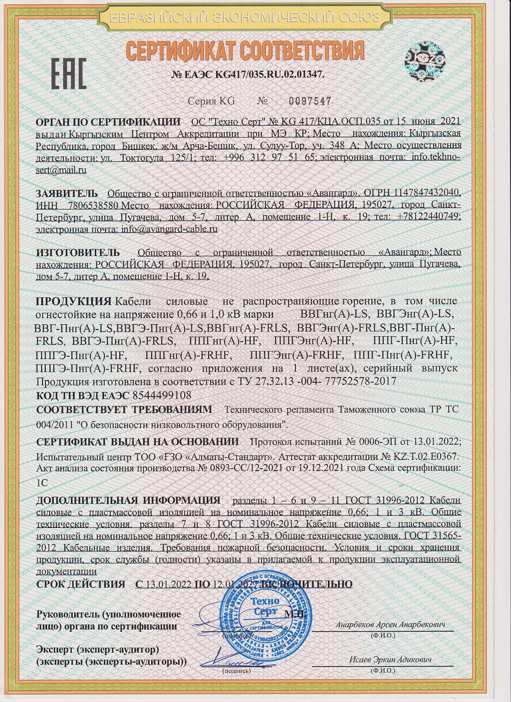 Кабель ВВГнг(А)-FRLS 5x1.5 (ОКЛ) Авангард купить в Челябинске в компании ВИПАКС.