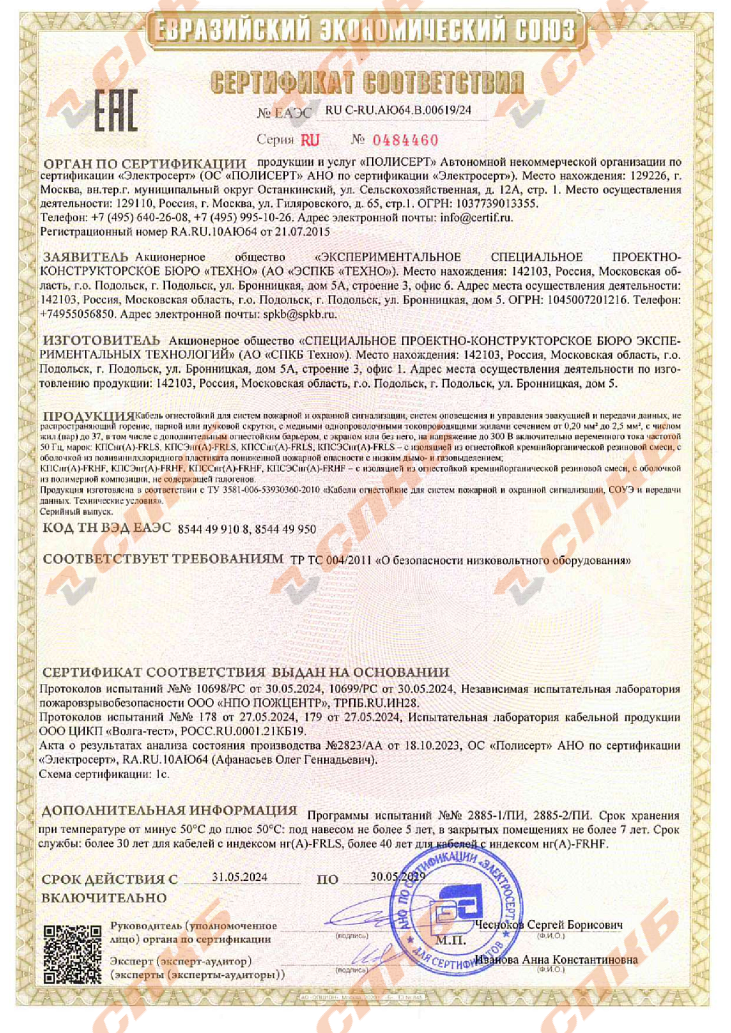 Кабель монтажный, огнестойкий, с низким дымо- и газовыделением, в оболочке из кремнийорганической резины, однопроволочный, 1 пара, экранированный, D-внешний = 5.5 мм, S-жил = 0.5 кв мм, (оранжевый) …