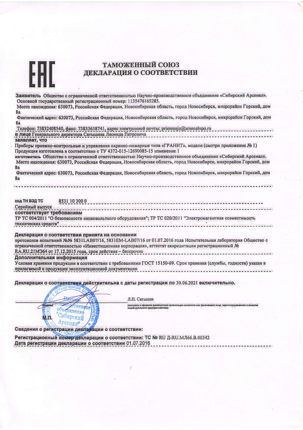 Прибор Гранит-8 применяется для охраны различных объектов, оборудованных электроконтактными и токопотребляющими охранными и пожарными извещателями. Особенности прибора: в зависимости от исполнения позволяет подключить 3, 5, 8 или 12 шлейфов сигнализации (ШС) с функциями охранных или пожарных; наличие выходов и органов управления оповещением при пожаре; гибкость настройки: прибор имеет 7 стандартных тактик применения, а при использовании программного обеспечения (ПО) конфигуратор «ArsProg Гранит»; возможность передачи тревожных извещений «Пожар2», «Пожар1» и «Тревога» на пульт централизованного наблюдения по двум каналам путем размыкания «сухих» контактов выходных реле; парольная защита органов управления прибора от несанкционированного доступа и т.д. Прибор имеет возможность электропитания прибора от внешнего источника питания +12 В. Устройство предназначено для установки внутри охраняемого объекта и рассчитан на круглосуточный режим работы.