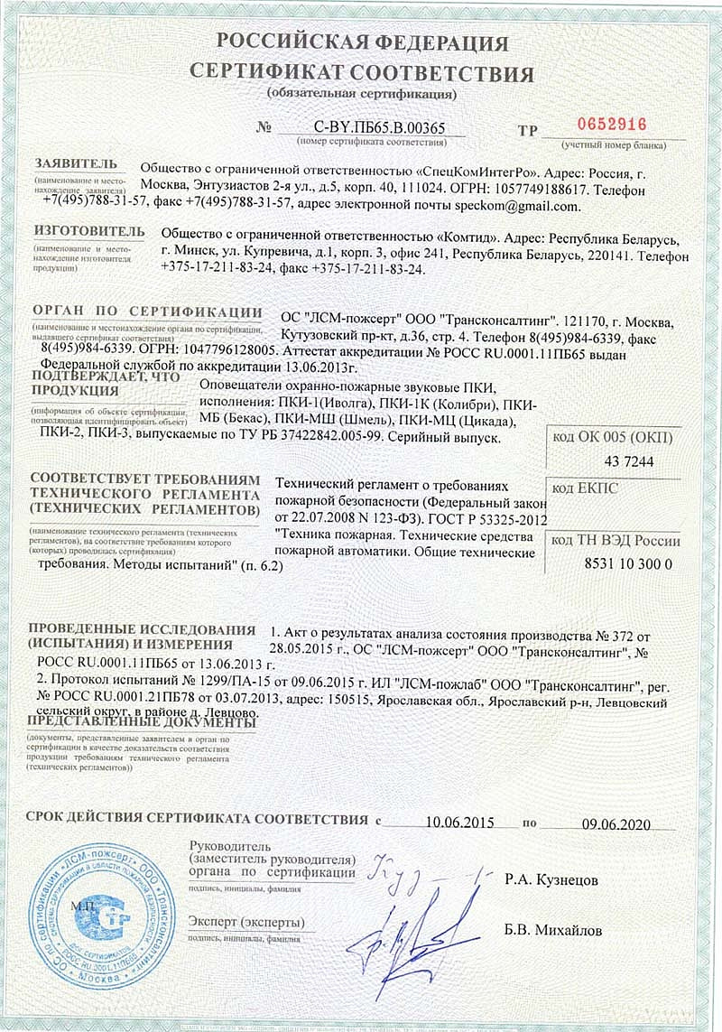 Оповещатель Иволга 24В ПКИ-2 звуковой Комтид купить в Челябинске в компании ВИПАКС.