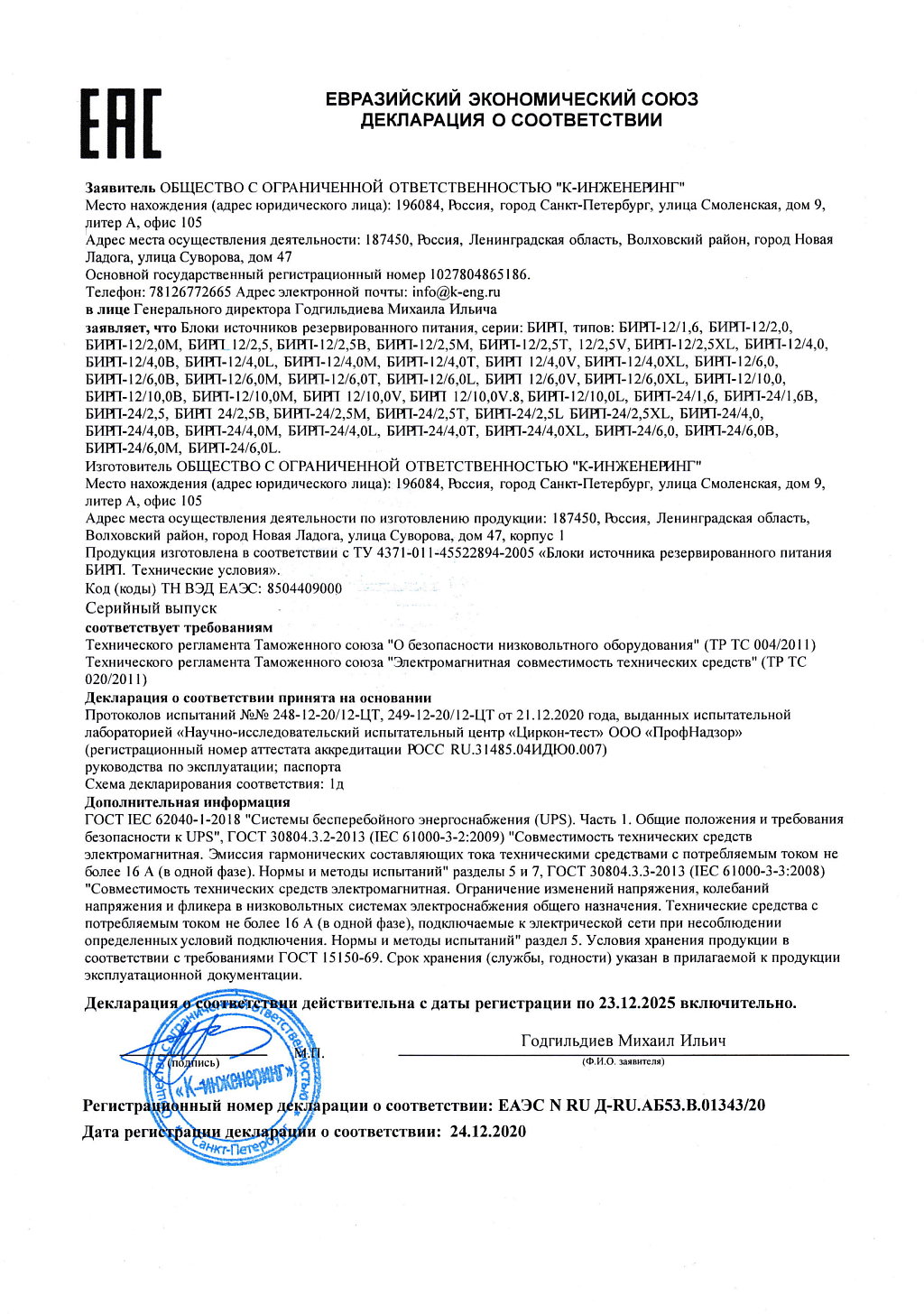 Прибор предназначен для гарантированного электроснабжения постоянным током технических средств охраны, сигнализации и связи. В БИРП имеется защита аккумулятора от глубокого разряда. Прибор имеет следующие особенности: обеспечивает автоматическое отключение и заряд АБ, а также защиту от неправильного подключения (переполюсовки) АБ; прибор снабжен электронными защитами от короткого замыкания и превышения выходного напряжения; в блоке предусмотрены информационные выходы «Контроль Сети (КС)», «Контроль батареи (КБ)» и выходы «Контроль выхода (КВ)» для передачи информации во внешние цепи. Блок рассчитан на эксплуатацию в закрытых помещениях