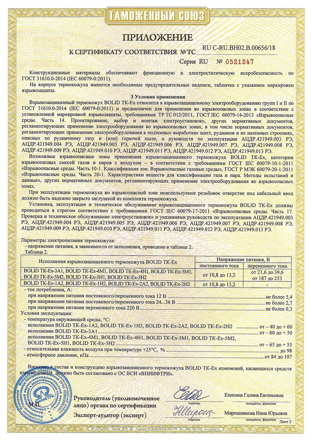 Сертификат соответствия Термокожух взрывозащищенный TK-Ex-5M2 исп.32 BOLID (лист 2)