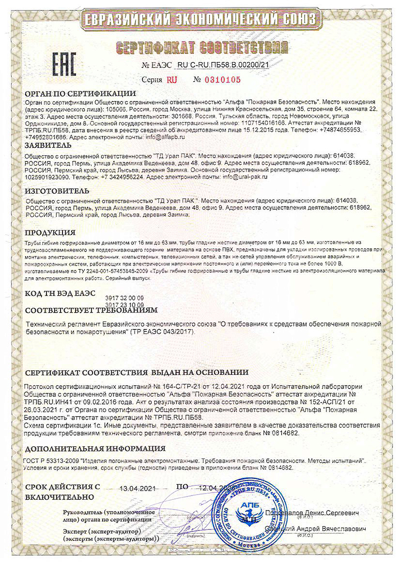 при напряжении не более 1000 В.Трубы обеспечивают степень защиты от воздействий окружающей среды IP55 при условии обеспечения такой же степени защиты другими элементами сети.