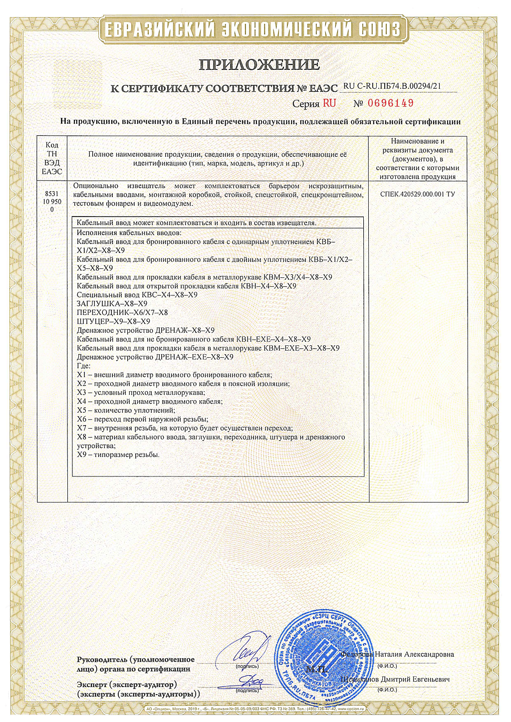 - оповещателей серии ОЗ-Exd, ОС-Exd, ОСЗ-Exd, ТСВ-Exd, ТСЗВ-Exd;