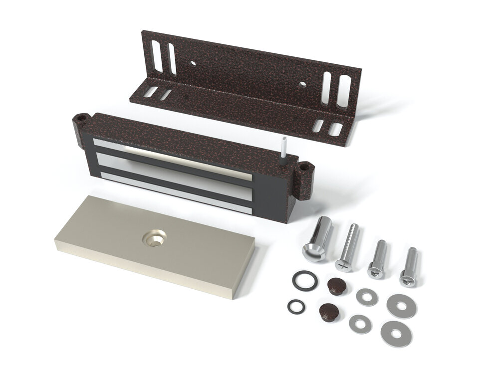 Замок электромагнитный для стальных дверей со стальной рамой, сила удержания 250кг, 9-15VDC, 0,6А, 7,2 Вт, встроенный модуль перемагничивания, монтажный комплект, уголок 40х50х4мм. Корпус из стали. -40…+45°C. Цвет корпуса (LG)- светло-серый, магнит: 120х38х26 мм, пластина: 125х45х11,2 мм.